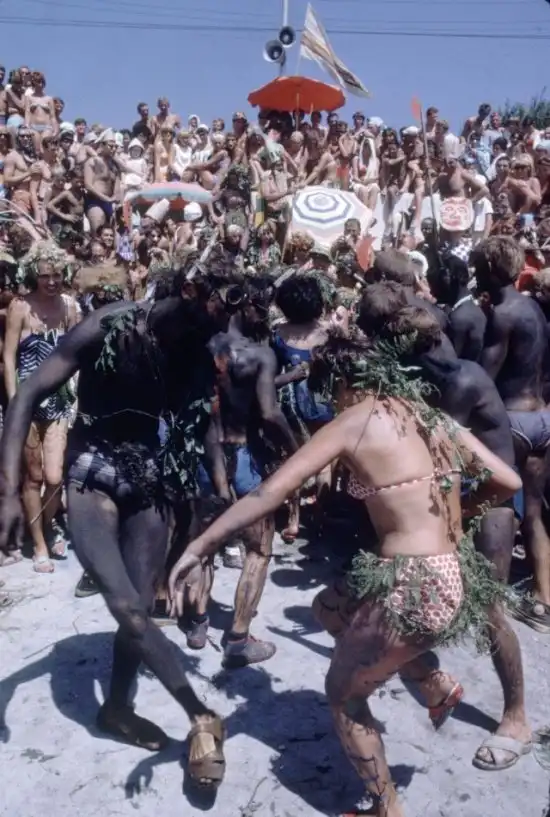 На пляже у Черного моря молодежь отмечает Праздник Нептуна