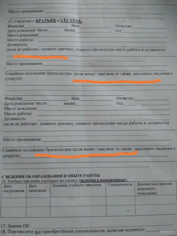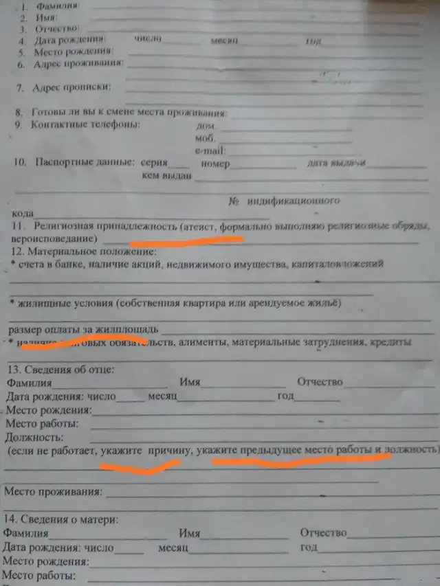 Когда видишь такую анкету, нанимаясь на работу, то невольно задумываешься, что же там за должность такая, если работодатель хочет знать о вас абсолютно всё на свете. Вы только посмотрите на эту шикарную анкету далее.