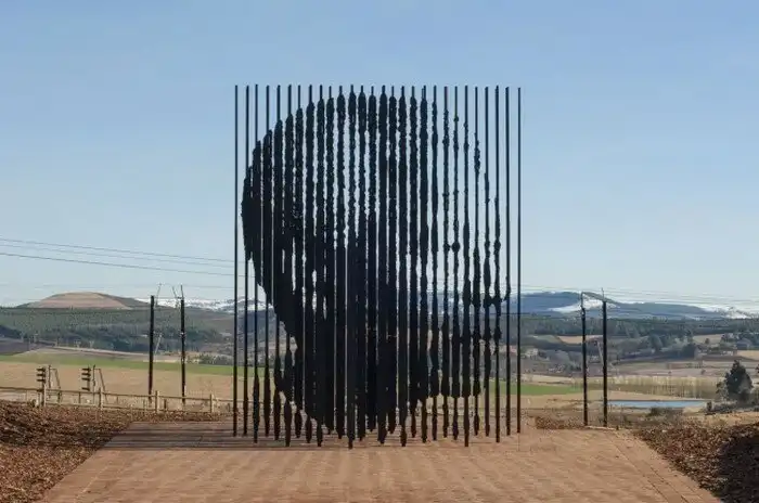 24. Памятник Нельсону Манделе видно лишь с одного ракурса. С остальных он выглядит простым нагромождением металлических столбов