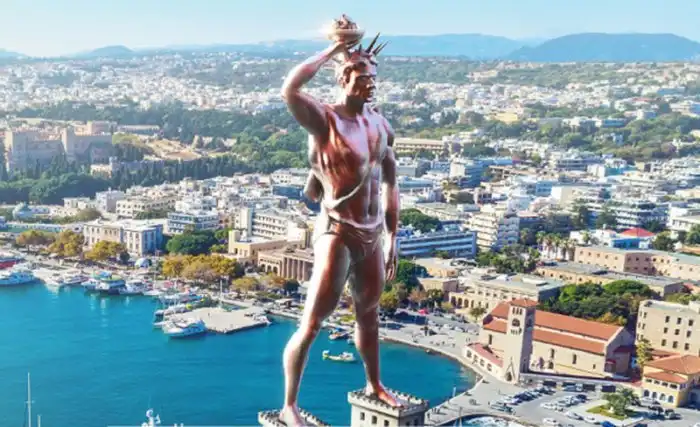 Колосс Родосский - статуя бога Солнца Гелиоса, стоявшая у входа в родосскую гавань Мандраки. 31-метровая статуя возвышалась на двух 15-метровых мраморных башнях, что позволяло даже самым большим кораблям проходить в гавань Родоса. Статуя была воздвигнута жителями острова в честь победы над Деметрием Македонским в III веке до н.э. Автором статуи стал Харес, ученик Лисиппа. Прочность конструкции была обеспечена дополнительными опорами, однако, несмотря на это, колосс не смог выдержать сильнейшего землетрясения, которое произошло ориентировочно в 226-227 году до н.э. Как утверждают историки, колосс простоял около 56 лет. Ее обломкилежали у входа в гавань больше 800 лет, пока арабские завоеватели не захватили остров и не вывезли бронзу на продажу купцам, для чего им понадобилось нагрузить бронзовыми слитками 900 верблюдов.
