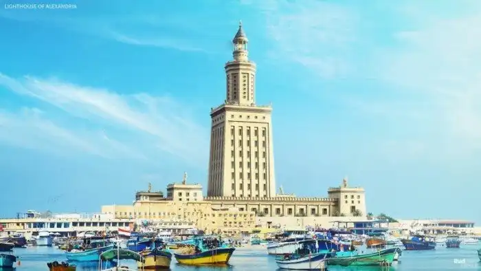 Александрийский маяк был построен в III веке до н.э. на острове Фарос около египетской Александрии архитектором Состратом Книдским по заказу правителя Египта Птолемея I. Маяк строили 12 лет. Его высота достигала 135 метров, а его свет был виден за 50 километров. Он состоял из трех башен: прямоугольного основания, восьмиугольного строения в середине и цилиндра в верхней части. Александрийский маяк считается первым маяком в мире. Он служил много столетий, однако в XII веке, с упадком Александрии, маяк погас, а в XIV столетии был разрушен землетрясением.