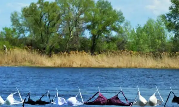 Как вы уже могли догадаться, там появился мост, сделанный из бюстгальтеров. Как выяснилось, это часть акции под названием "Бюст-мост", призванной привлечь внимание общественности к проблемам рака груди.