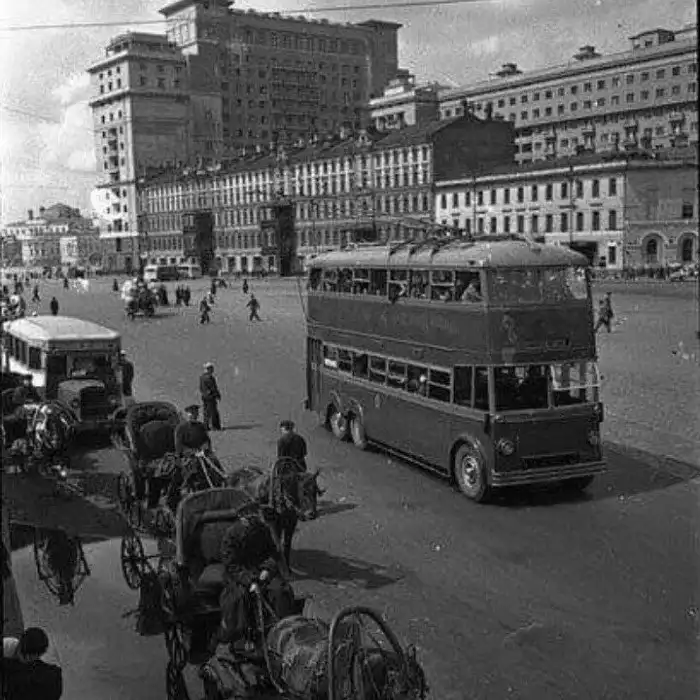 3. Двухэтажный троллейбус. Москва. Середина 30-х годов прошлого века