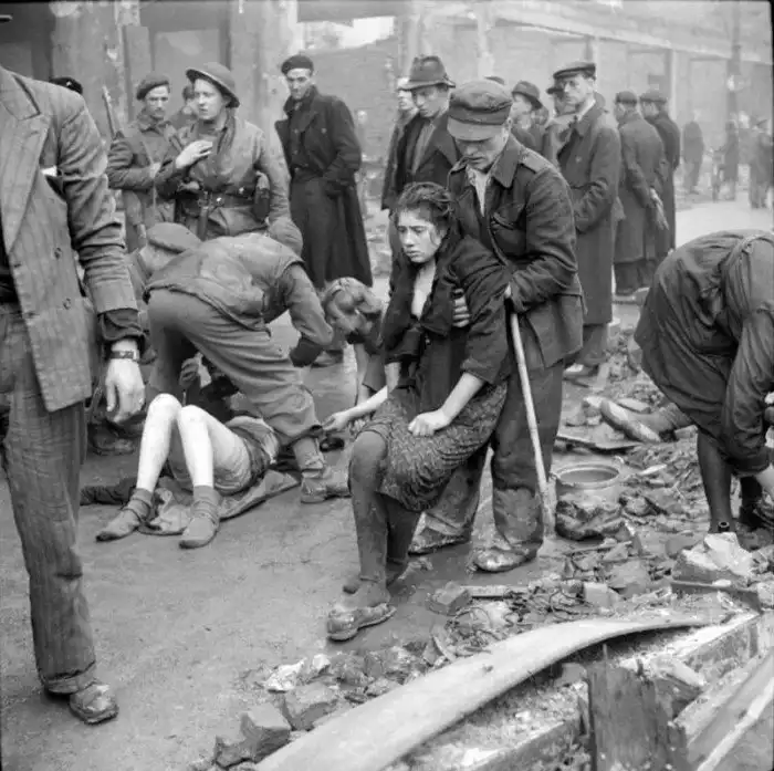 12. Спасение советских рабынь из подожженных немецкими полицейскими подвалов Оснабрюка. Германия 7 апреля 1945 года