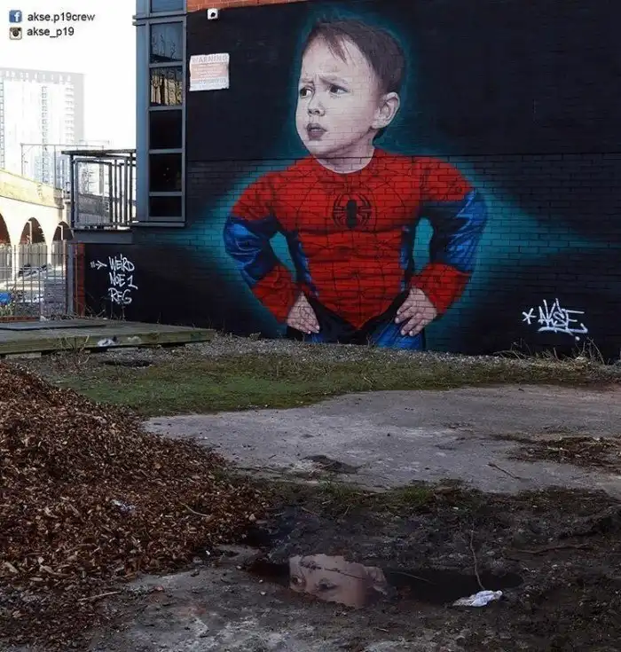 Младший сын художника в образе Человека-паука