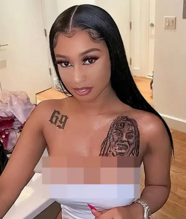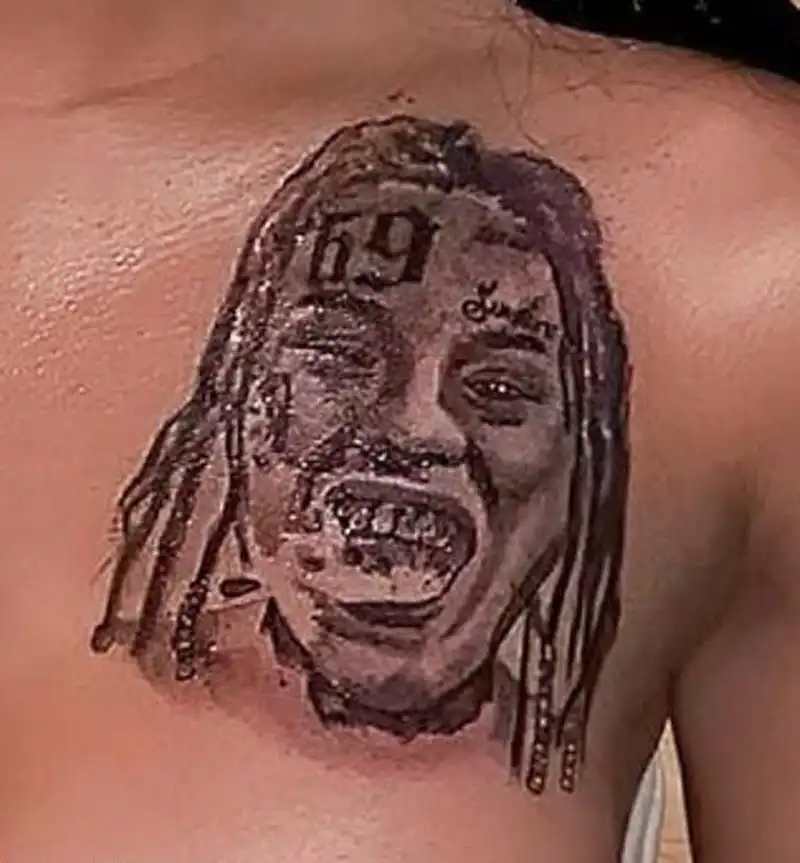 Барышня по имени Джейд набила у себя на груди физиономию своего дружка. Таким образом она показала, что рэпер-миллионер всегда в ее сердце и она поддерживает его. Ох и дура.