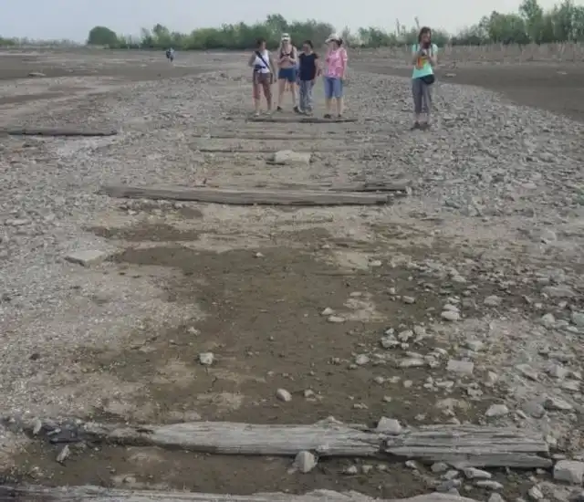 По сути, это и действительно историческая часть Казани, которая была затоплена после создания Куйбышевского водохранилища. Сейчас уровень воды в водохранилище резко снизился, поэтому реки обмелели. По предварительным данным, эта мостовая связывала город с Адмиралтейской слободой.