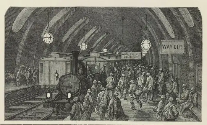 "Утренний рабочий поезд". Паровые поезда на станции "Гауэр-стрит" в подземке, открывшейся в 1863 году
