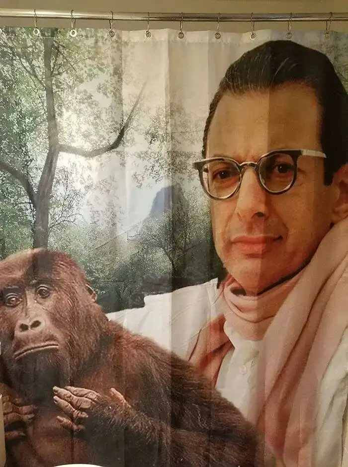 7. "Ничего особенного, просто штора для ванной с изображением Джеффа Голдблюма и обезьянки"
