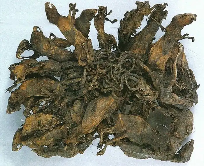 "Крысиные короли" - это несколько крыс со свитыми между собой хвостами. Таких жутких "существ" действительно находили, и они вызывали множество споров. Одни эксперты утверждали, что это всего лишь чья-то шутка, другие находили явлению объяснение. Крысы могли сплетать хвосты в холодную погоду, чтобы согреться, а хвосты склеивались из-за липких выделений.