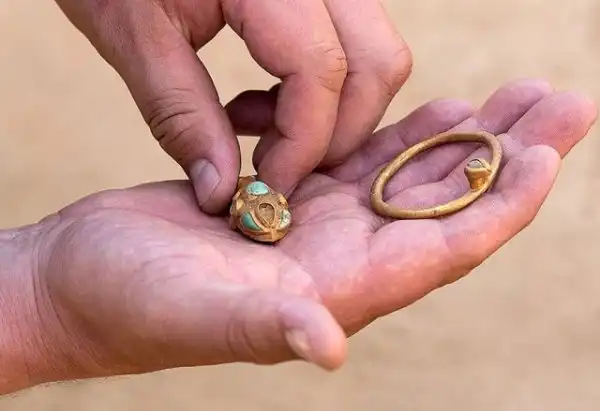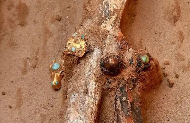 "Мы ведем раскопки уже 12 дней. Мы нашли множество золотых украшений с бирюзой и вставками из лазурита и стекла", - пояснили археологи.