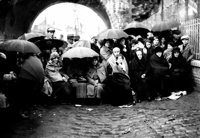 Жители Борена неподалеку от христианской школы ждут появления Девы Марии, которую несколько ребят якобы видели здесь днем ранее, Бельгия, 1933 год