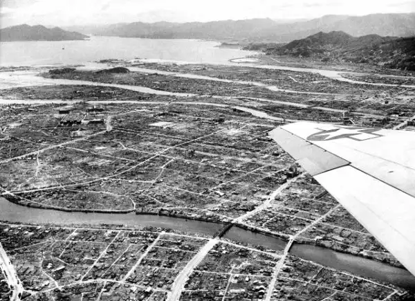 Вид с воздуха на Хиросиму через год после ядерного взрыва, Япония, 1946 год