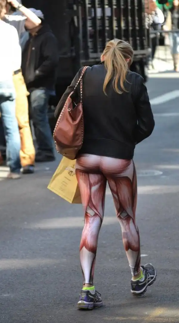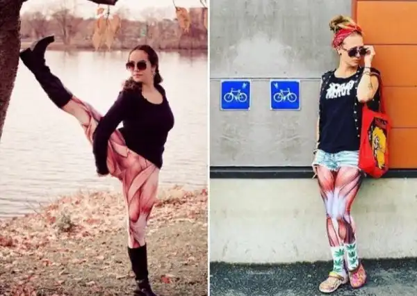 Первыми рейтузы со стремным принтом примерили поклонницы фитнеса, а потом уже и остальные барышни начали шокировать народ видом ног, с которых как будто содрали кожу.