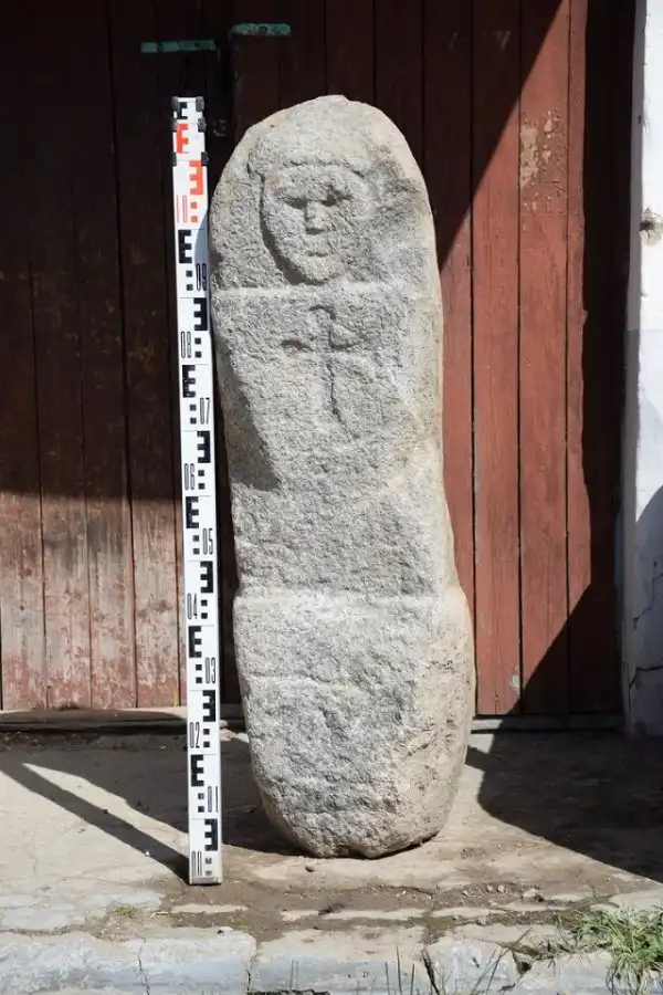 "У гранитного изваяния высотой 117 сантиметров и весом не менее 300 килограммов четко видны лицо со схематически нарисованными глазами, носом, ртом, сзади - затылок, лопатки", - сообщают местные СМИ.