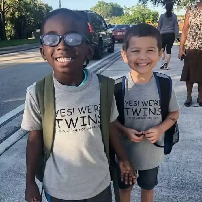 Кто-то спросил эту пару лучших друзей, знают ли они, что отличает их друг от друга — мальчик, стоящий сзади сказал: «Да! Он немного старше меня»