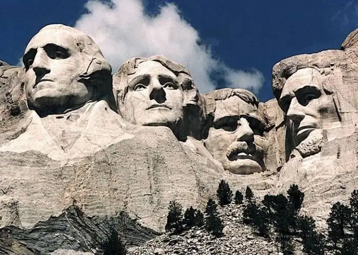Гора Рашмор сейчас. В горе вырезаны головы президентов Джорджа Вашингтона, Томаса Джефферсона, Теодора Рузвельта и Авраама Линкольна.
