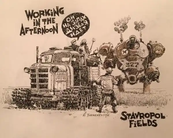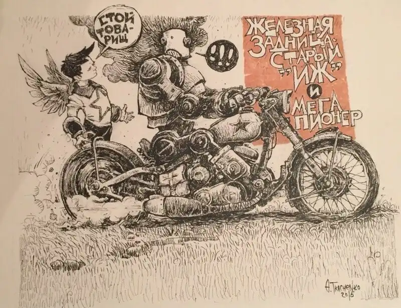 Андрей Ткаченко как раз из таких — художник легко комбинирует народные сказки, дизельпанк и современность, и рисунки у него получаются такие, что разглядывать их — одно удовольствие!