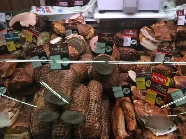 Польские колбаски - почти легенда. Видов миллион. И все вкусные! От 100 рублей за пачку, но бывают и дешевле. Вон, нарезка колбаски - 60 рублей. И это мясо!