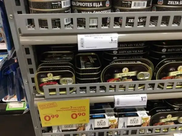 Самые разные консервы. Цены вроде бы соотносимы с нашими, но выбор другой. Тут, в основном, все импортное. У нас - российское, казахстанское.