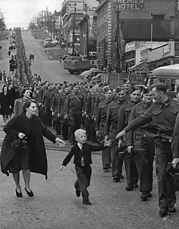 Перед глазами Клода Деттлоффа разыгралась личная трагедия маленького ребенка, когда он делал фотографии марша Полка Британской Колумбии 1 октября 1940 года. На снимке Клода пятилетний Уоррен Уайти Бернард бежит от своей матери к отцу, рядовому Джеку Бернару, с криком «Подожди меня, папа». Момент, запечатленный на фотографии, настолько пронзительно рассказывает о той боли, которую испытывают дети при расставании с отцами, что впоследствии фотография получила широкую известность: была опубликована в «Life» и висела в каждой школе Британской Колумбии во время войны. А Клод, проникнувшийся привязанностью сына к отцу, стал следить за этой разлученной семьей, и снял её воссоединение, после возвращения Джека с войны.