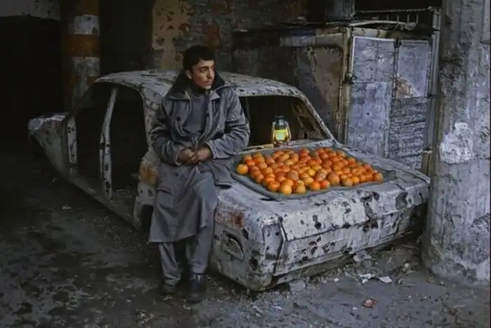 Стив Макарри обладает удивительной способностью снимать фотографии, которые рассказывают целые истории своих героев. На снимке фотографа разрушенный войной Афганистан, и парень, лицо и глаза которого могут сказать больше любых слов. Яркий цвет фруктов на фоне безрадостной серой гаммы вселяет некую надежду, делая снимок жизнеутверждающим.