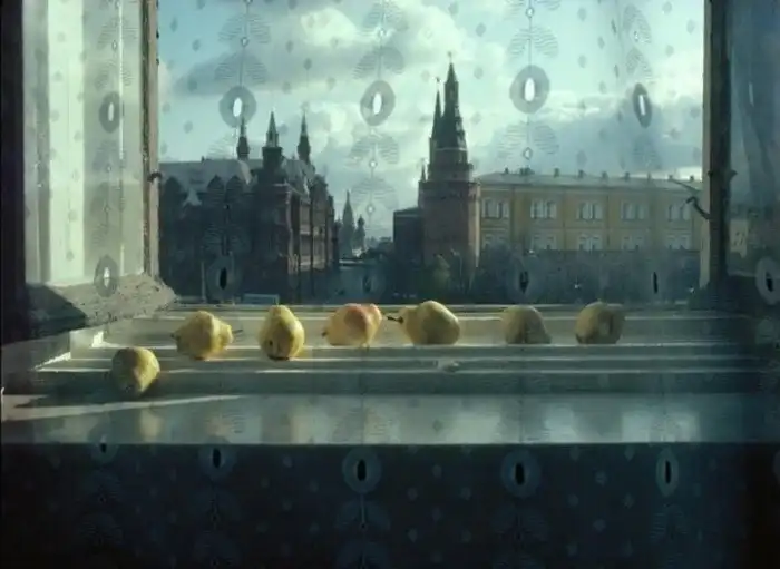 Снимок легендарного Сэма Абеля. Незатейлевый, на первый взгляд, он чуть не стоил жизни фотографу. История автора: «В 1986 году я в очередной раз приехал в СССР в командировку. На этот раз меня поселили в гостинице „Националь“ с прекрасным видом на Манежную площадь и Московский Кремль. В один из скучных вечеров после рабочих съемок я сидел у себя в номере и думал, чем бы себя занять. Достал камеру и начал фотографировать вид из окна. Получалась эдакая туристическая открытка — чего-то явно не хватало. И тут я вспомнил про груши, привезенные с собой (в перестроечном СССР на фрукты был особый дефицит), и подумал, что они смогут разгрузить обстановку.Я стал раскладывать их на подоконнике, как вдруг заметил, что по брусчатке в сторону Манежной площади движется правительственный кортеж Горбачева, состоящий из трех машин: представительного ЗИЛа и машин сопровождения. Я навел на него объектив, радуясь, что получу необычный кадр. Но службе безопасности Михаила Сергеевича это не понравилось. В считанные секунды (я еще не успел ничего понять) раздался выстрел. Почти беззвучный. В страхе я отпрянул назад. Понимая, что с этими людьми шутки плохи, я решил в окно больше не высовываться и сидел тихо, пока кортеж не миновал. Натюрморт из-под подоконника с одной из груш, помеченной выстрелом, — это все, что осталось мне на память от этой истории».Удивительный снимок был куплен журналом National Geographic за рекордно высокую сумму — 220000 USD.