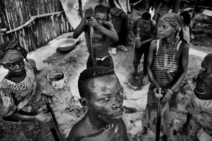 Единственное, что мешает Маркусу Блисдейлу быть полностью довольным жизнью — это ночные кошмары. Он провел в Конго более семи лет, фотографируя что-то отдаленно похожее на жизнь, и знает, что около 1250 человек там ежедневно настигает смерть. Совсем не просто вернуться из Конго и жить прежней жизнью. На фотографии Маркуса рабочие, которых удерживают на таможенных складах. Их заставляют добывать золото в каменоломнях горы Монгбвалу. Люди трудятся целыми семьями. Золотодобыча ведется с целью финансирования военных кампаний.