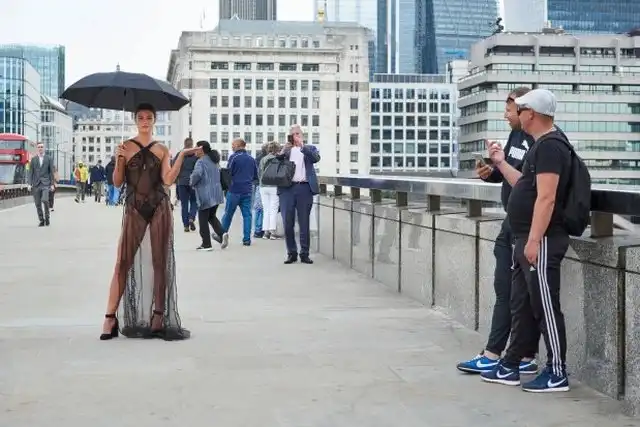 25-летняя жительница Эссекса по имени Джейд Льюис решила прогуляться по центру Лондона в идентичном прозрачном наряде, чтобы посмотреть на реакцию жителей города.