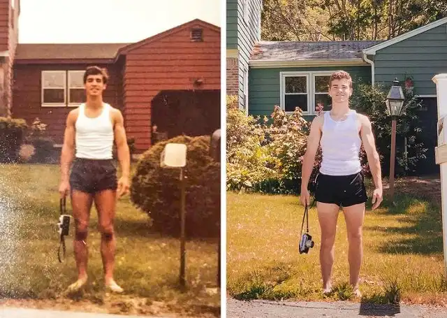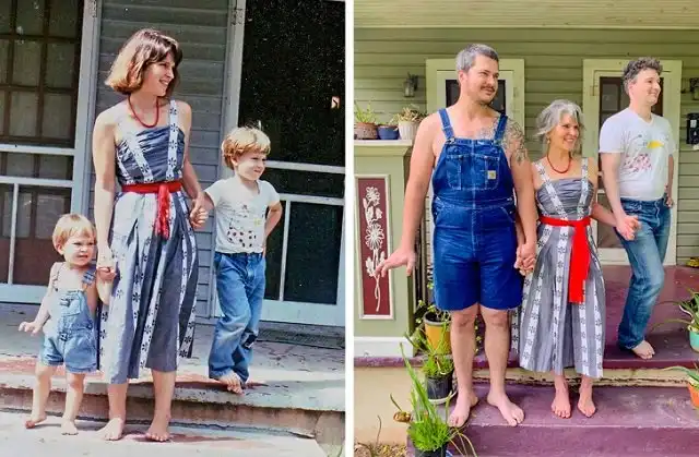 Фотоаппарат - это полноценная машина времени. Это из года в год доказывает популярный флешмоб, на котором люди переснимают фотографии из своего детства. При этом важно учесть все детали: локацию, одежду, позу и даже выражение лица. Иногда эффект получается таким ярким, что начинает казаться, будто мы попали в прошлое. Давайте посмотрим на фотографии друзей и родственников, которые воспроизвели свои старые снимки из семейных альбомов.