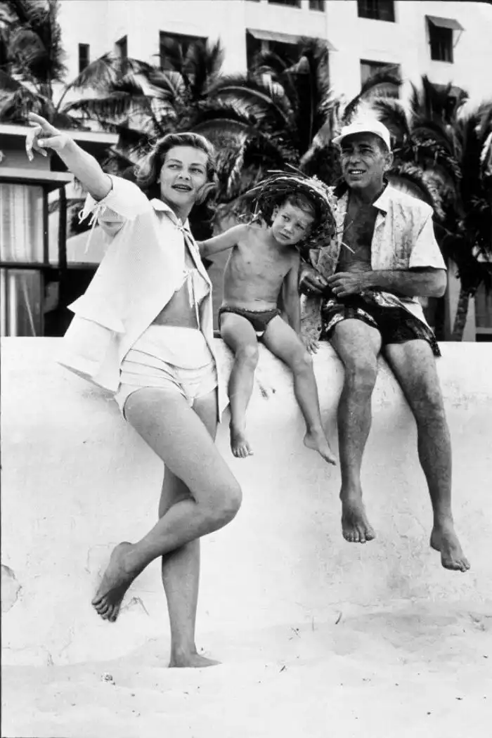 Лорен Бэколл и Хамфри Богарт вместе с сыном Стивеном на Гавайях, 1954
