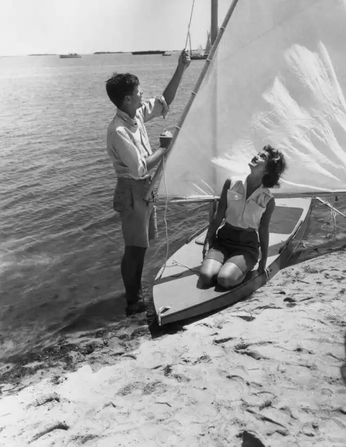 Джон Ф. Кеннеди и Жаклин Бувье Кеннеди в Гианнис Порт, Массачусетс, 1955