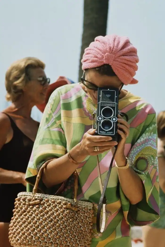 Принцесса Монако Грейс фотографирует соревнования по плаванию в Палм-Бич, Монте-Карло, 1972