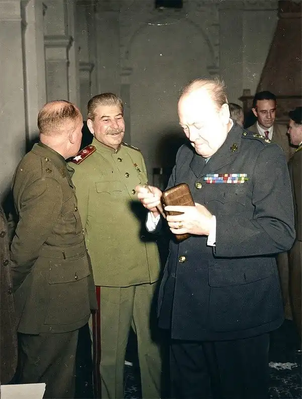 Сталин и Черчилль в Ливадийском дворце во время Ялтинской конференции, февраль 1945 г.