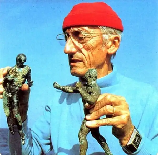 Жак Кусто и его команда осматривают итальянскую керамику, обнаруженную на греческом корабле. (январь 1954 года)