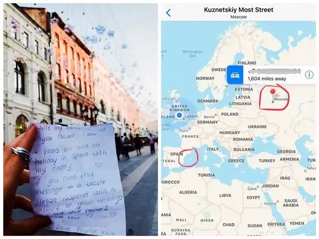"Привет, Тэйлор! Мы нашли твою бутылку в Москве-реке (это Россия). Надеемся, твой отдых в Испании прошёл замечательно. С любовью из Москвы!", - сказано в ответной записке.