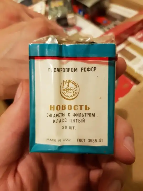 Сидел сегодня у друга в гостях, как он вдруг метнулся в шкаф и достал это чудо. Говорит коллекционировал его дедушка, где-то с 90-х годов. По нашим грубым подсчётам в коробке несколько сотен пачек, все разные и в упаковке.