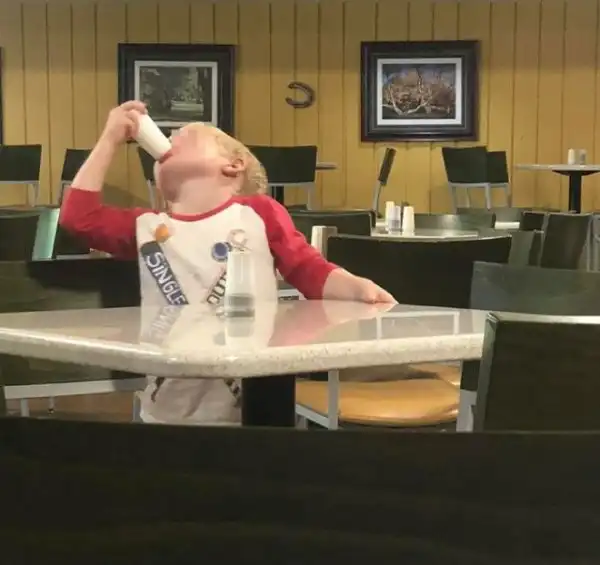 Пока его мама болтала по телефону, ребенок проделал это со всеми солонками заведения:
