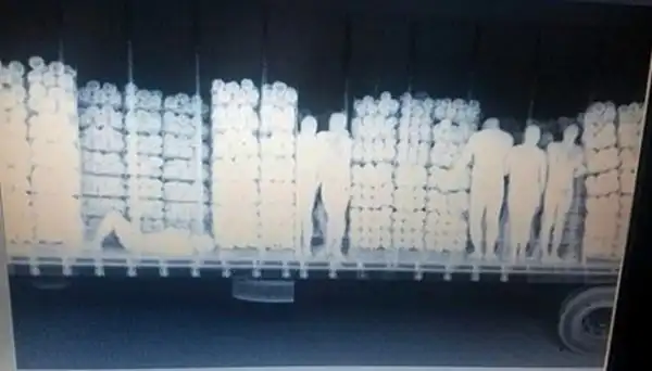 На границе Аризоны остановили фуру и просканировали ее рентгеном. Стало понятно, что внутри скрываются нелегальные эмигранты, которые прячутся за коробками, еще не подозревая того, что они уже видны, как на ладони.