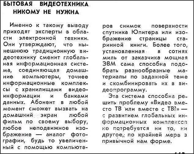 В далеком 1989 году в журнале "Наука и жизнь" появилась статья под названием "Бытовая видеотехника никому не нужна". В ней были размышления на тему будущего и самое интересное, что автор как в воду глядел...