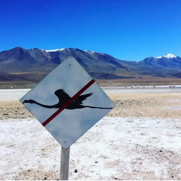 Этот знак поставили для того, чтобы люди не подходили к фламинго и не пугали их. Некоторые специально тревожат птиц, чтобы сделать красивые фотографии.