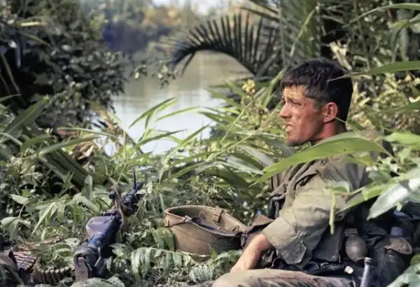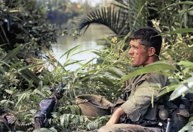 Американский пулеметчик в джунглях. Война во Вьетнаме. 1960-е