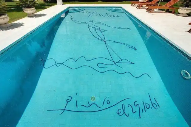 Автограф Пабло Пикассо на дне бассейна его друга, танцора фламенко и актёра Антонио Руиса Солера. Испания, 1961 год