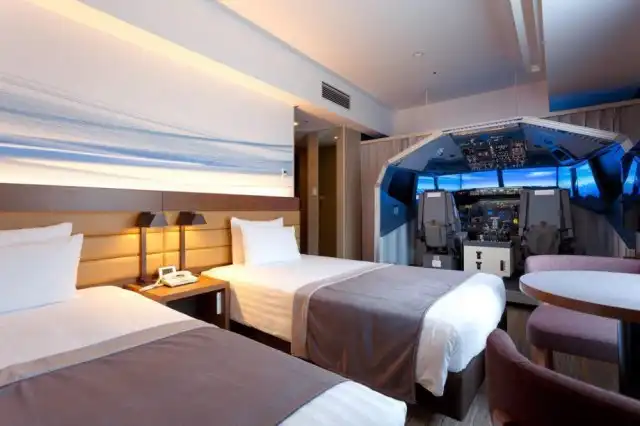 Японский отель при аэропорте дает возможность ощутить себя настоящим пилотом. В одном из номеров они разместили авиасимулятор, повторяющий кабину самолета Boeing 737-800. Интересная задумка, правда, можно увлечься и совершенно забыть про отдых перед полетом.