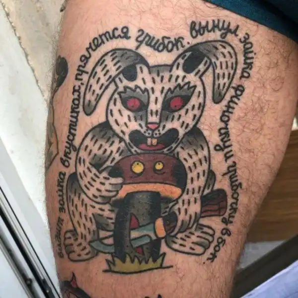 Питерский тату-мастер Егор Лещев по образованию горный инженер. Но несколько лет назад Егор увлекся татуировкой, друзья подарили ему брендовую тату машинку и о перспективе работы в шахте пришлось забыть. Сейчас Лещев работает в уникальной технике, вмещающею в себе лубочную картинку, олдскул и непередаваемый русский колорит.