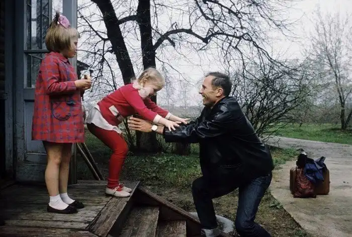 14. Василий Шукшин с дочерьми Олей и Машей