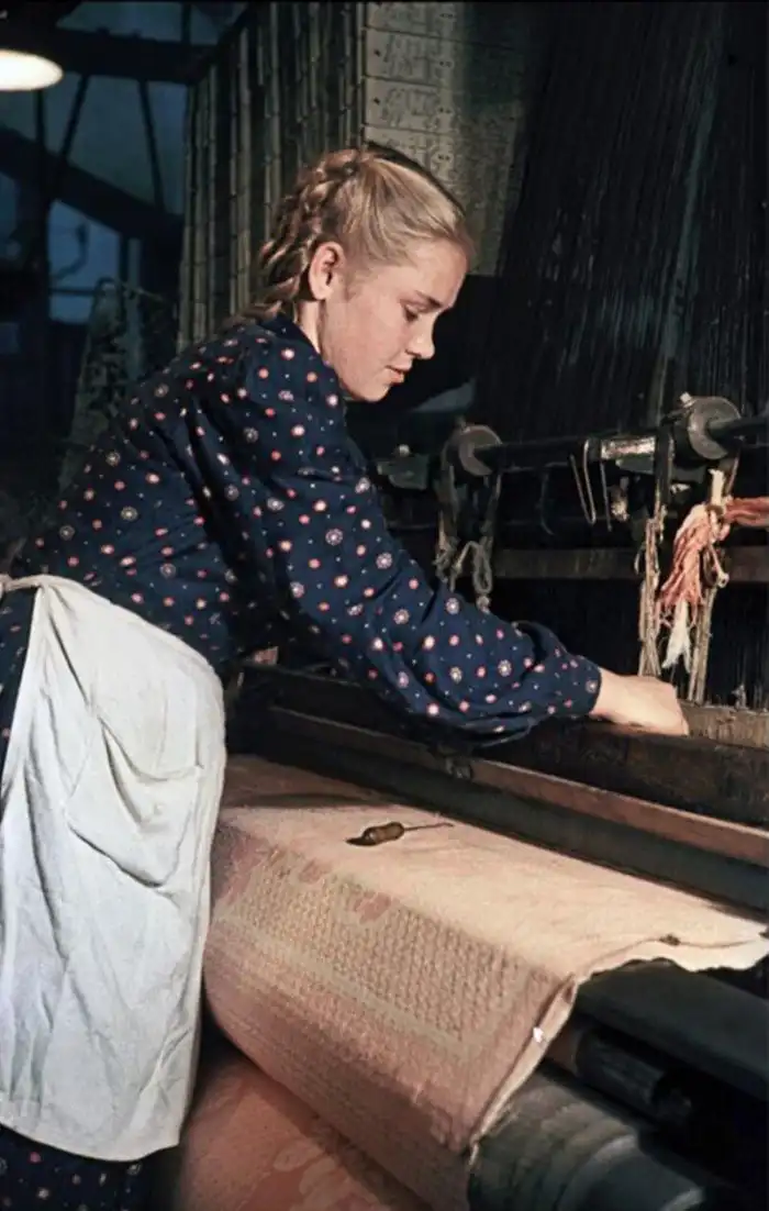 19. Комсомолка Хорева Римма — одна из стахановок льнокомбината «Заря социализма». Город Гаврилов-Ям. Санько Г.З., 1953 год: