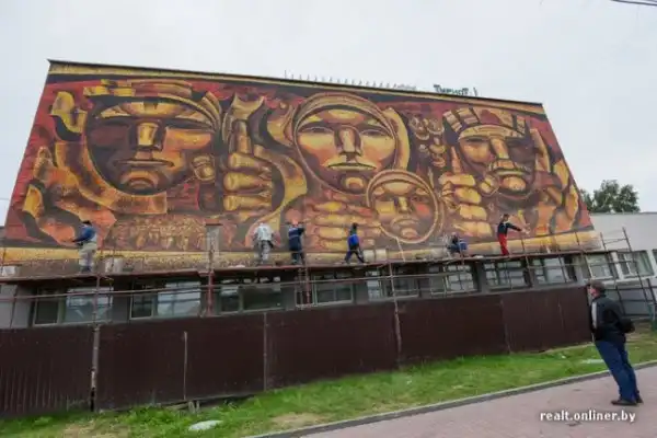 После просмотра этой новости, захотелось с вами поделиться историей из Белоруссии. В Минске в 2015 году реставрировали панно "Беларусь партизанская" на гостинице "Турист". Там не стали использовать современные материалы для того, чтобы спрятать картину за серой облицовочной отделкой. Тут приложили немало усилий, чтобы дать историческому образу новую жизнь. Вот это правильный пример реставрации и уважения к истории.