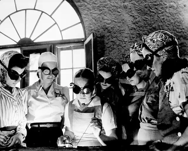 Американские девушки учатся работать со сваркой в профессионально-технической школе штата Флорида, США, 1942 год