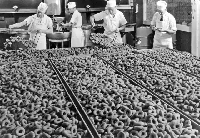 Выпечка пончиков в компании Sugar Crest Donuts в Портленде, штат Орегон, 1918 год
